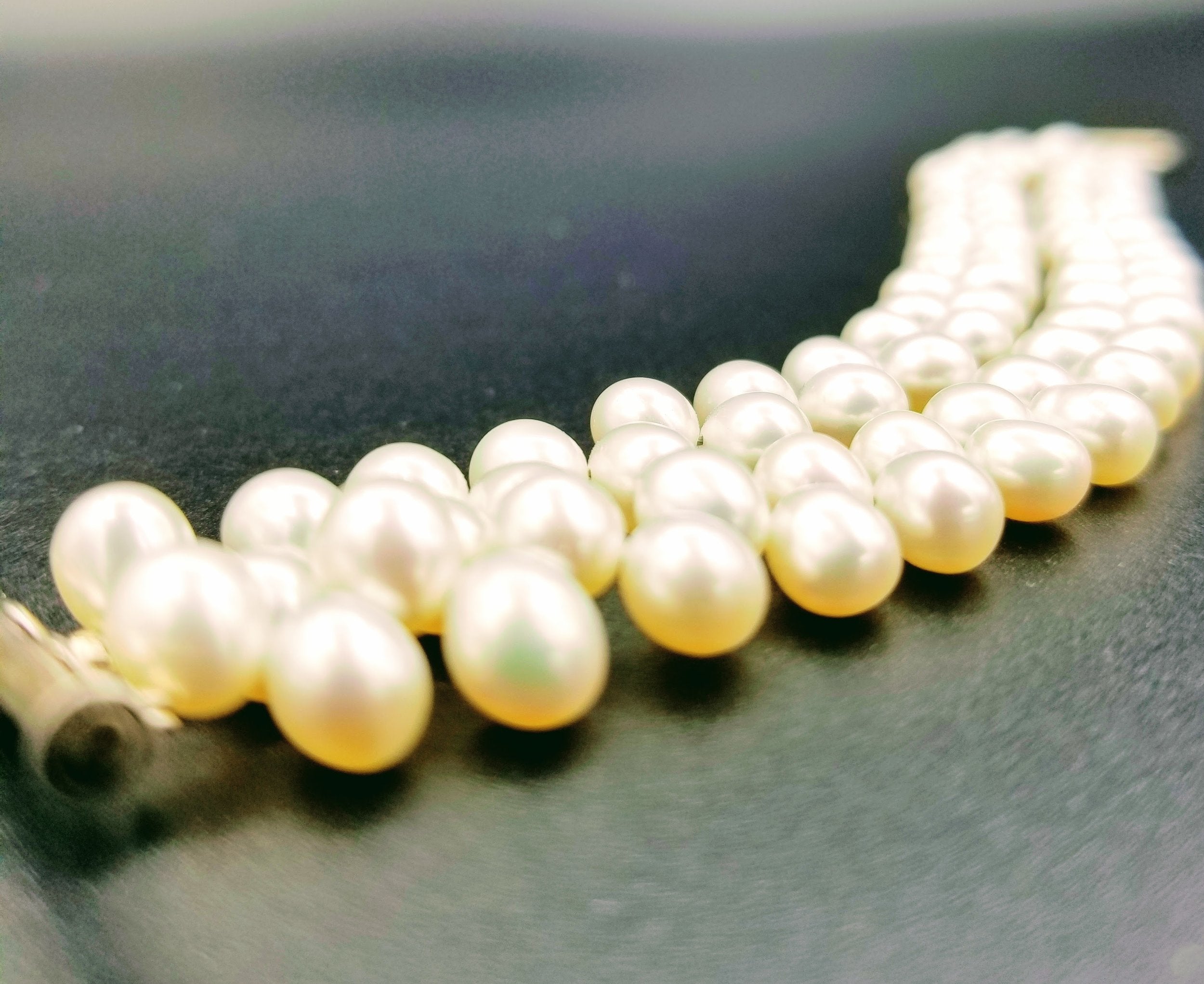 Strong, resilient and iridescent, these pearls look and feel like silk against your skin. A lace like design with a bold sterling silver clasp makes this piece both darling and daring.Length: 7 inchesWeight: .06 lbs